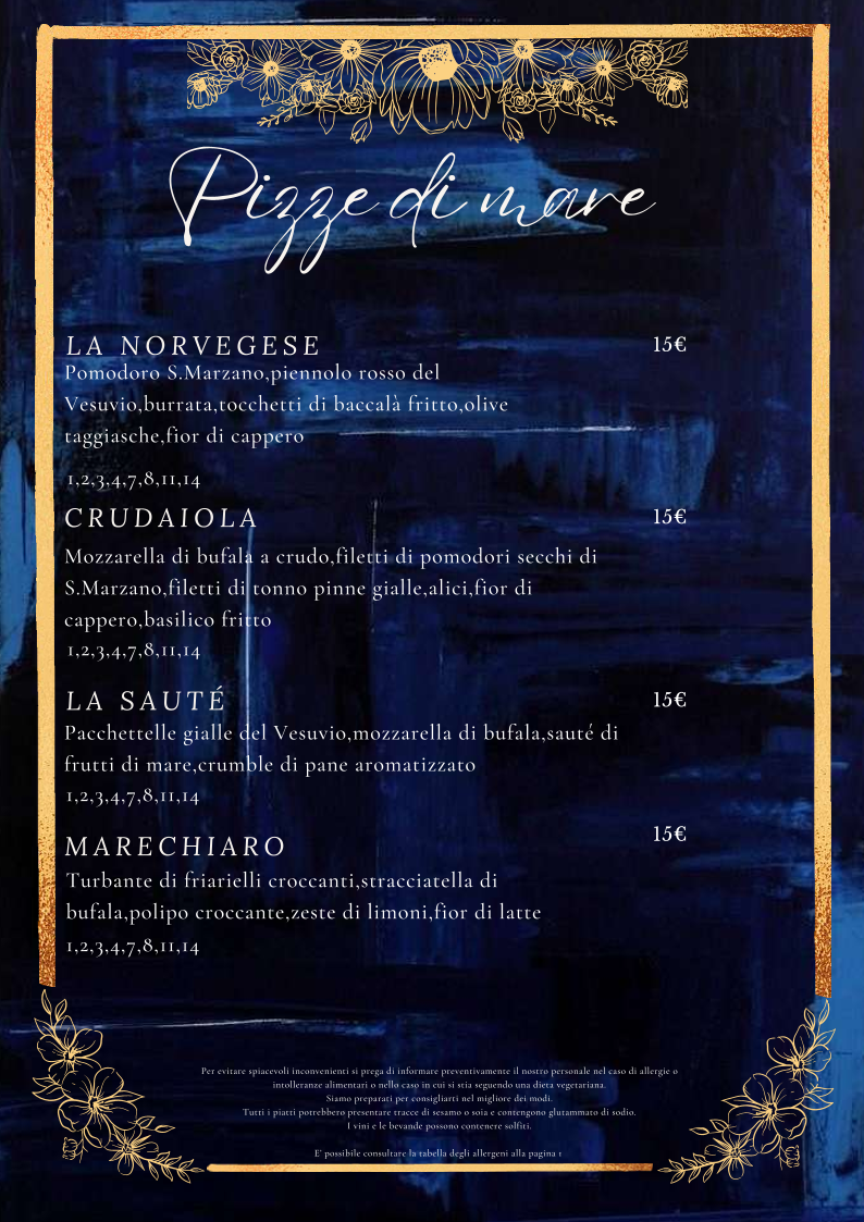 Diverse offerings: Beyond pizza, the menu features delightful seafood dishes, further enriched by homemade desserts like the exquisite pastiera napoletana.